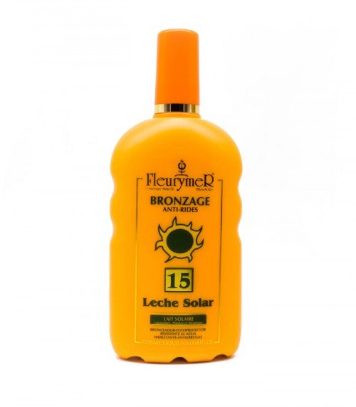Leche solar spf-15 250 ml Botella. Producto Fleurymer con formato práctico. Consulta el etiquetado para modo de empleo.