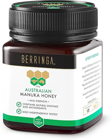 Resumen: miel de manuka 120mgo 500 gr Berringa es una miel de Manuka de Nueva Zelanda con grado MGO indicado, en formato de 500 gr. miel de manuka 120mgo 500 gr es ideal como alimento natural para consumo cotidiano dentro de una dieta equilibrada.