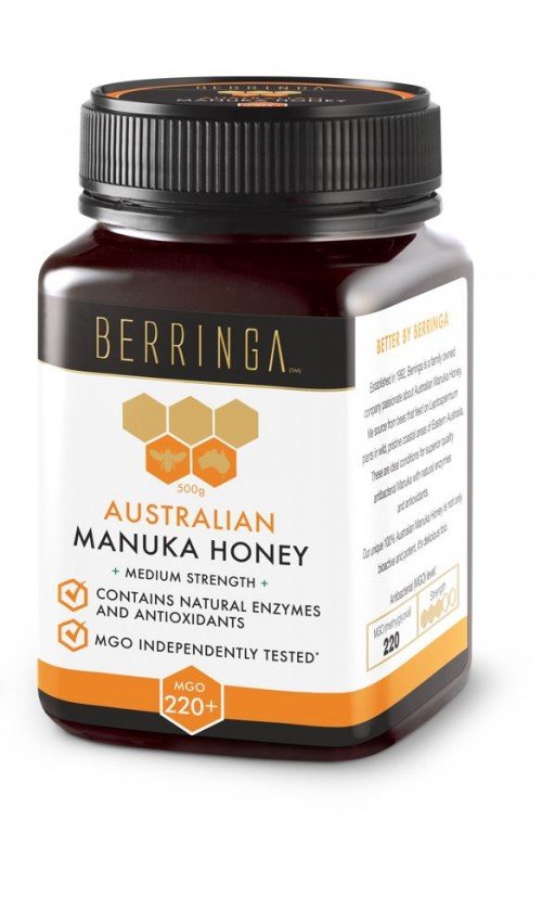 Resumen: miel de manuka 220mgo 500 gr Berringa es una miel de Manuka de Nueva Zelanda con grado MGO indicado, en formato de 500 gr. miel de manuka 220mgo 500 gr es ideal como alimento natural para consumo cotidiano dentro de una dieta equilibrada.